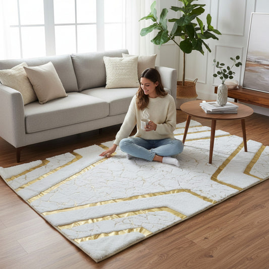 1.5 x 2m 3D Marble Design Carpet Blue & Gold