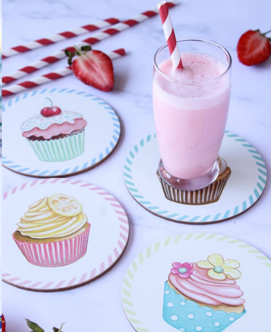 Kitchen Life Round Cupcake Coaster Set Of 4 - White