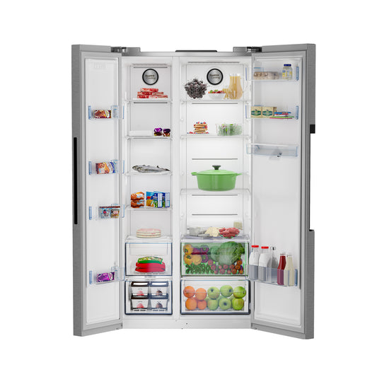 Defy 614lt Naturelight Side by Side Fridge Freezer Metallic