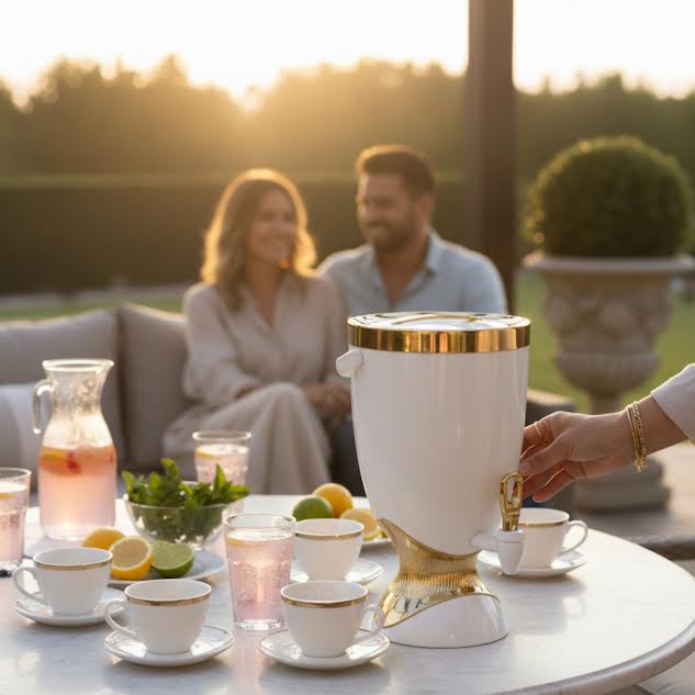 Serve up style with this sleek 5.5Lt Beverage Dispenser in sophisticated white and gold. Perfect for entertaining guests, hosting gatherings, or keeping refreshments chilled and ready to pour. The generous capacity means fewer refills and more time enjoying the party. Its elegant two-tone finish adds a touch of glamour to any table, bar, or outdoor setup. Whether you're mixing up signature cocktails, serving fresh lemonade, or keeping iced tea flowing, this dispenser combines practical functionality with undeniable flair. Make every pour a moment worth celebrating.