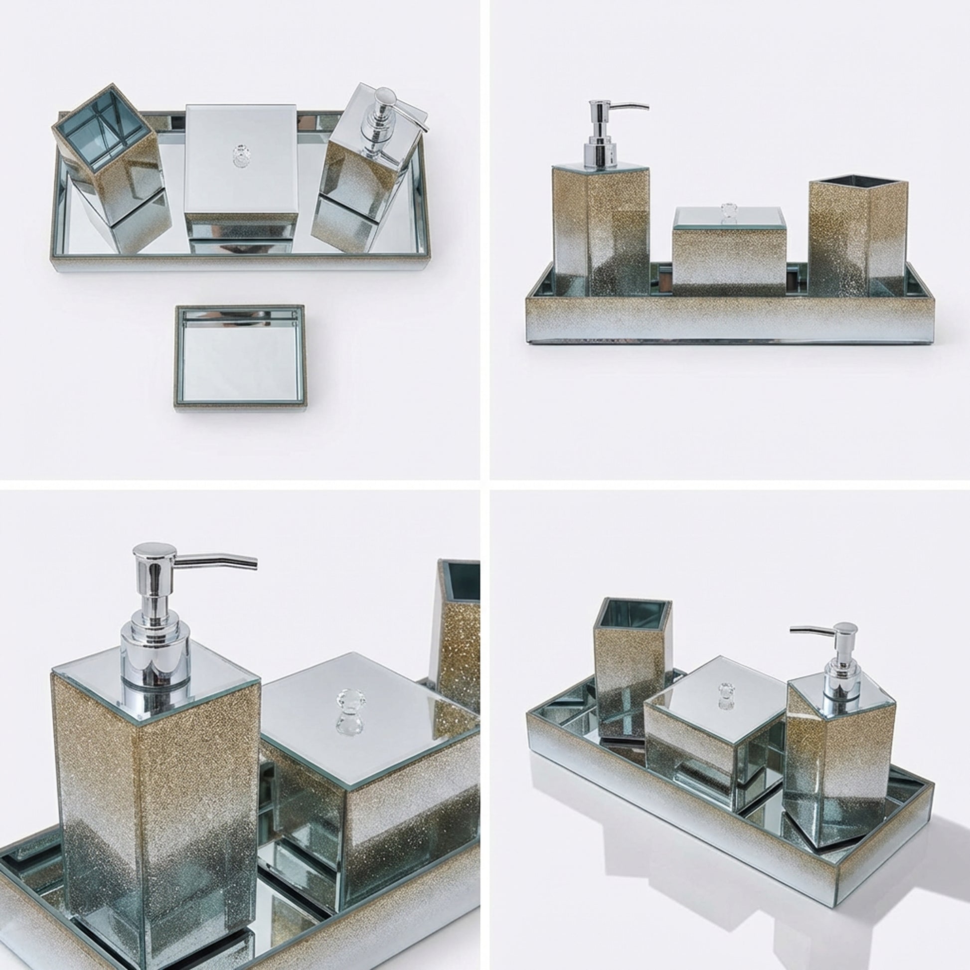Transform your bathroom into a glamorous retreat with this stunning 5-piece glitter bathroom set in radiant gold. Each piece features eye-catching sparkle and shine that elevates your daily routine into a luxe experience. The coordinated collection brings cohesive elegance to your space while adding that touch of opulence every bathroom deserves. Perfect for creating an Instagram-worthy aesthetic or gifting to someone who loves a bit of shimmer and sophistication in their home.